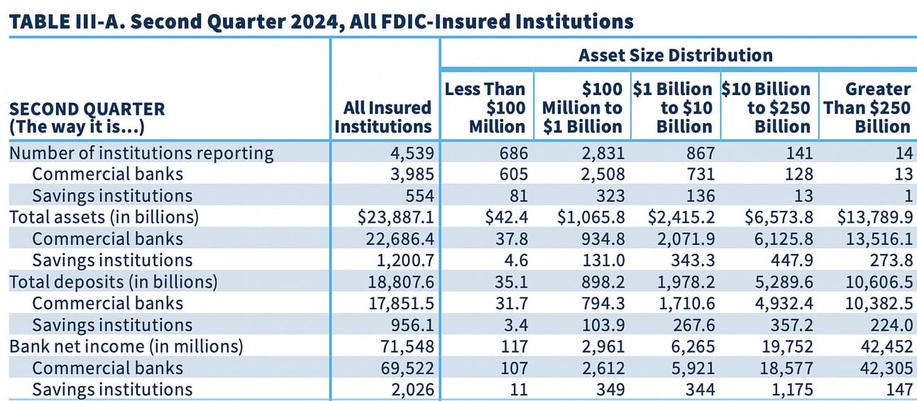 After all, about a dozen or so largest banks (with $250+ in assets) generate 60% of the industry’s profit (and hold 58% of the deposits).