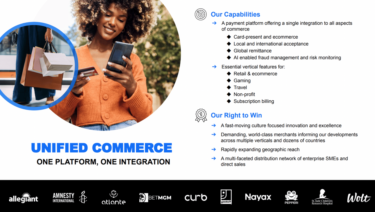 “Unified commerce. If it's a vague and nondescript name, that's kind of by design, it's because of a single integration for these customers' needs to allow them to sell everywhere in the world, physical, card-present, e-commerce, et cetera. It's every element of the commerce experience with a single integration, and we're basically enabling these customers all over the world.”
