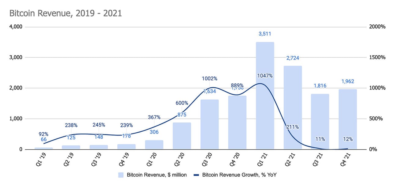 Block, Inc ( ), the company formerly known as Square, reported Q4 2021 and Full Year 2021 results yesterday. Last year Block made it loud and clear that despite being a sizeable public company they have no intentions of stopping innovation and experimentation. Thus, they kicked off 2021 by acquiring a music streaming service TIDAL (for $350 million), acquired one of the largest “Buy Now Pay Later” players in the world, Afterpay (for $29 billion in an all-stock deal, which turned to be $13.9 billion deal at the close in February 2021), and wrapped up the year by changing the name to Block to highlight their growing focus on Bitcoin experiments.