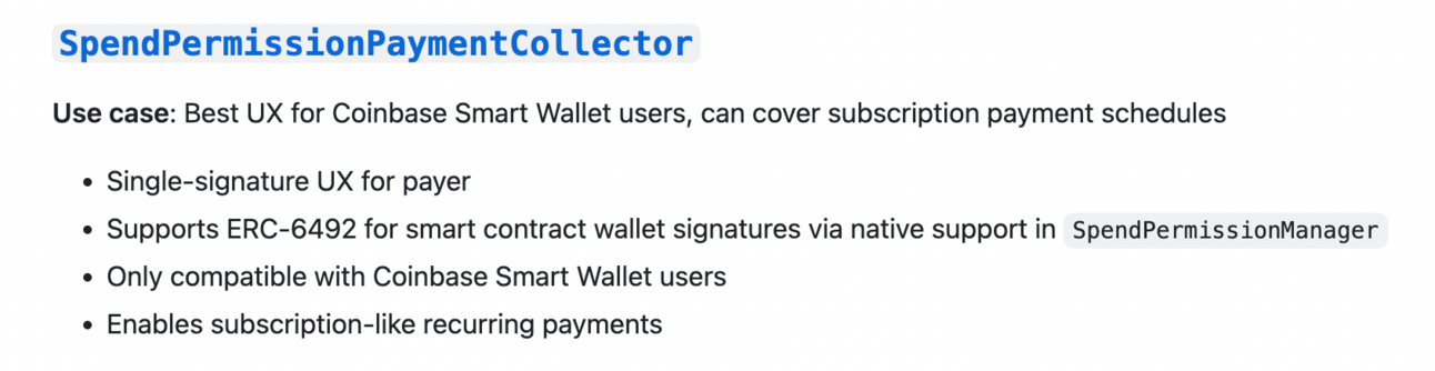 Token Collectors implement the logic of collecting buyer authorization, and the protocol doesn’t care how they work as long as the authorization is collected. Coinbase designed the protocol to be “completely agnostic about token authorization methods”, which enables innovation in payment instruments without the need for protocol changes.