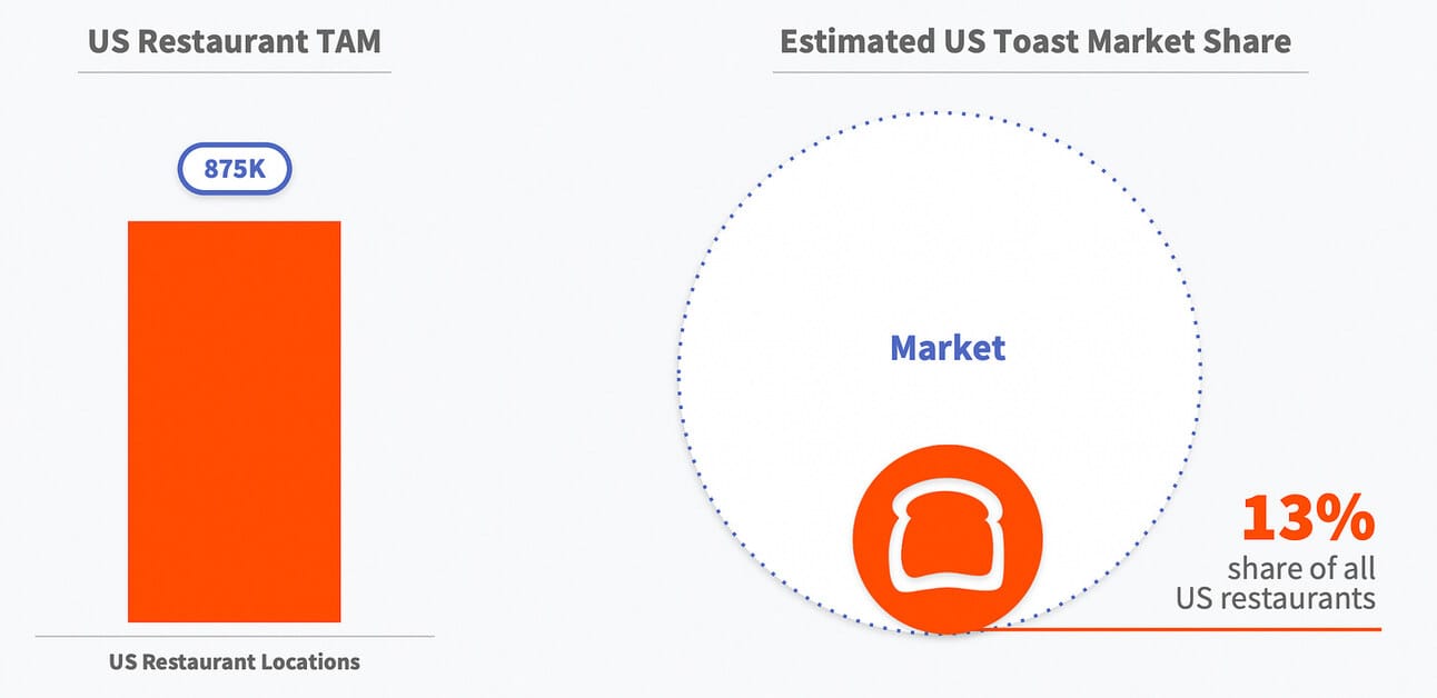 Both companies are also major players in their respective categories. Thus, Toast serves 112,000 restaurant locations, which they estimate to represent 13% of all U.S. restaurants. Shift4 does not disclose the number of served locations, but claims to serve “roughly 1/3 of the table service restaurants (and 40% of the hotels) in the United States.”