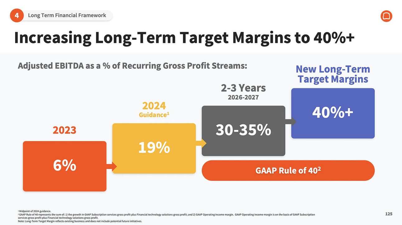 What about the trajectory beyond 2026? During their recent Investor Day (May 2024), Toast’s management laid out a plan to achieve 40%+ Adjusted EBITDA / Gross Profit margin in the long term (with the “long term” defined as “after 2027”).