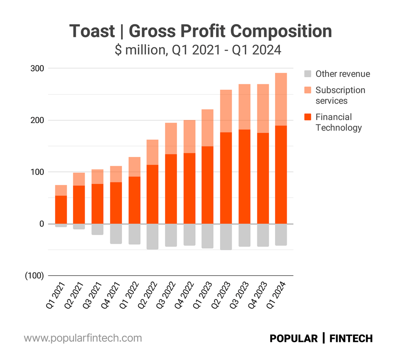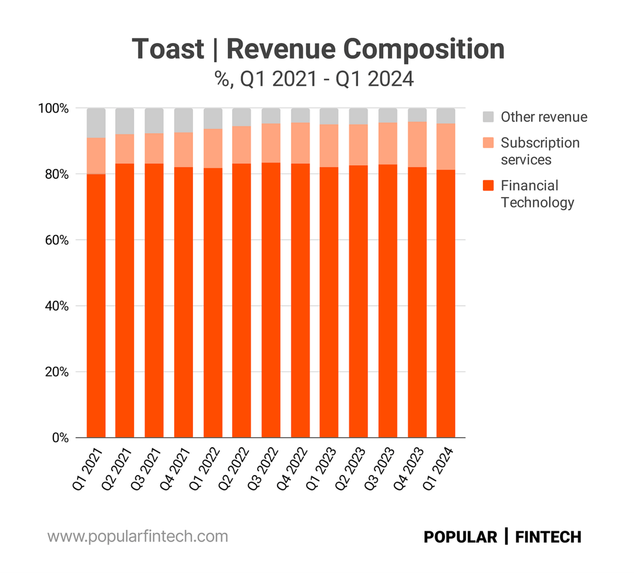 Nevertheless, restaurants remain the core segment for both companies. What’s also common between these two companies is that, similarly to other vertically integrated software providers, both companies generate most of their revenue from payment processing. Thus, as you can see from the chart below, over 80% of Toast's revenue comes from “Financial Technology”, which primarily comprises payment processing.