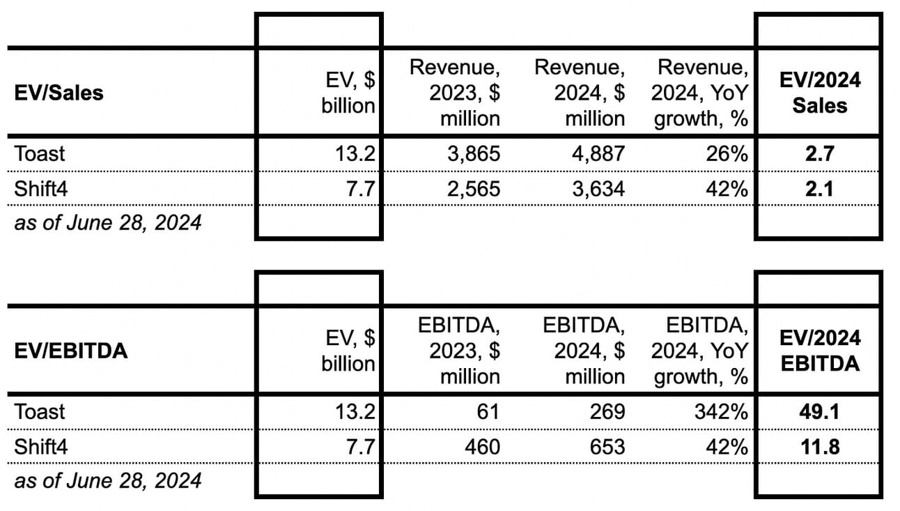 I have seen numerous theories trying to explain why Toast is valued higher than Shift4. Some seemed reasonable and grounded on facts, while many appeared to be baseless opinions. So, I have finally decided to explore whether there is a fundamental reason for the difference in valuation.