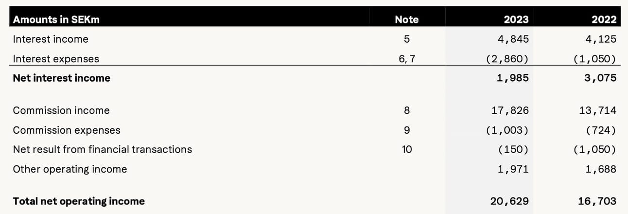 Here is an example of how Klarna reports its revenue (in millions of SEK):