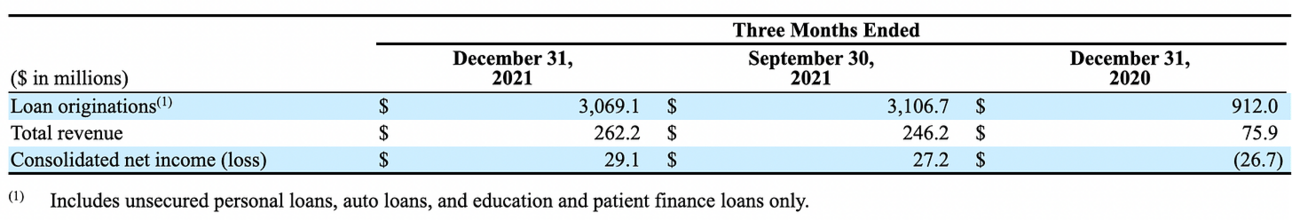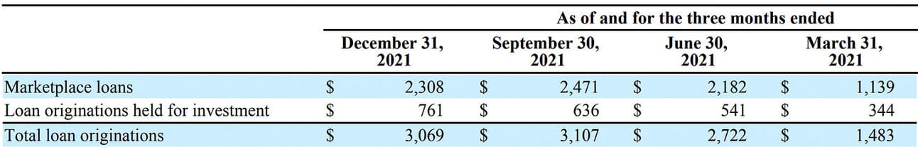 Q4 20221 earnings call clearly illustrated that the “Marketplace Bank” model actually works (LendingClub completed the year with net income for the first time as a public company), but first things first - as for any lender, loan originations volume is the key performance metric. LendingClub originated $3.1 billion in loans in Q4, 2021, and $10.4 billion in loans for the full year.