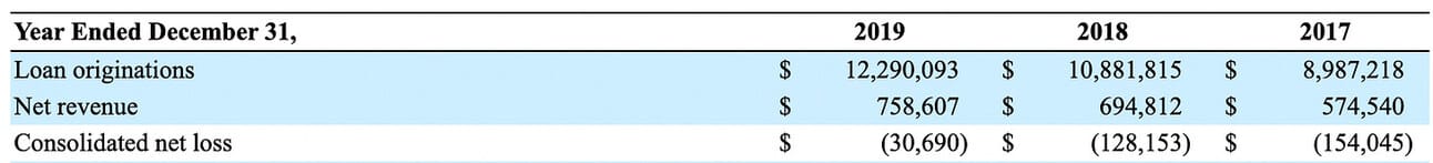 Comparing loan origination volumes with 2020 on either quarterly ($3.1 billion in Q4, 2021 vs $0.9 billion in Q4, 2020, or 250% growth YoY) or annual basis ($10.4 billion in 2021 vs. $4.3 billion in 2020, or 140% growth YoY), might hint for impressive growth; however, this would be misleading. During the pandemic, LendingClub scalled down originations considerably; and thus, 2021 performance looks outstanding. However, comparing 2021 results with previous years, one can see that this was not even the best year for the company in terms of origination volumes, as LendingClub originated $12.3 billion in loans in 2019.
