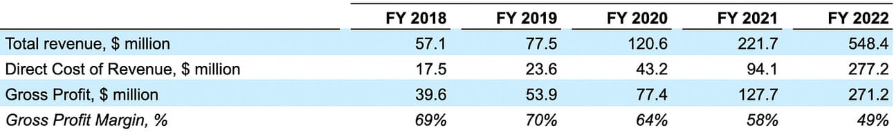 Adjusted EBITDA Margin has been steadily improving over the last five fiscal years reaching negative 8% in Fiscal 2022. The company’s management guided for a negative Adjusted EBITDA margin of 5% in Fiscal 2023, and expressed the ambition to reach Adjusted EBITDA profitability in Fiscal 2024.