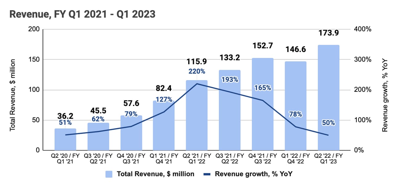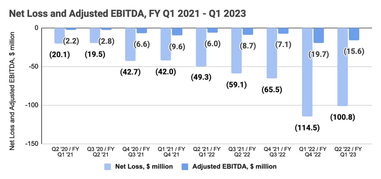 Path to profitability. The company’s management made a bold commitment to reach profitability on an Adjusted EBITDA basis in Fiscal 2024 (calendar Q2 2023 - Q1 2024). The company has been consistently improving its Adjusted EBITDA margin each year, so the commitment seems achievable. However, what is important is how the company gets there: through improving its cost discipline (cutting costs), or through a bigger scale (having more money in gross profit to cover operating expenses).