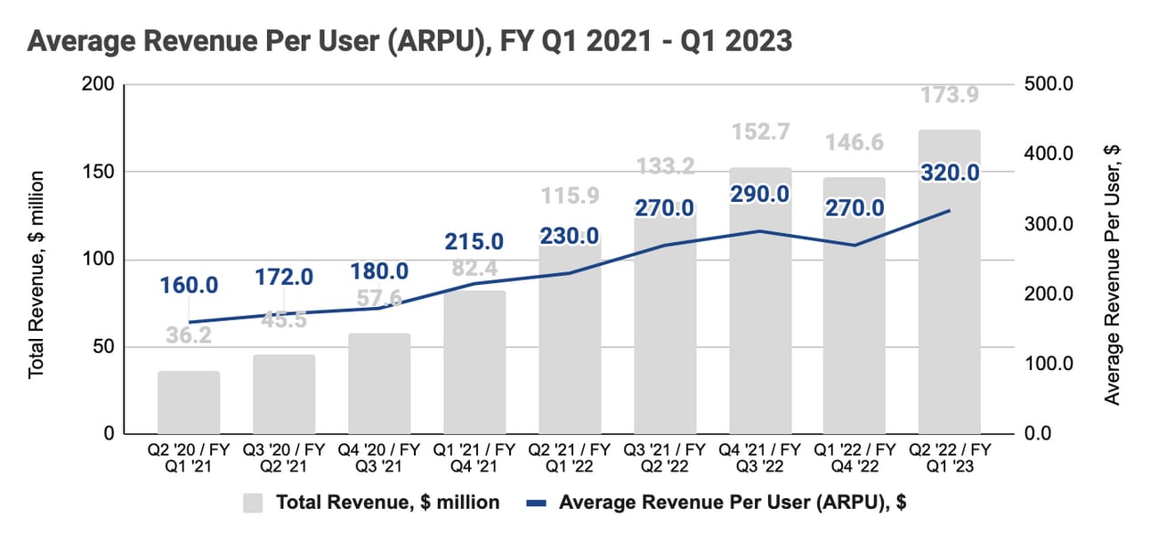 The company has been consistently increasing the Average Revenue Per User. Lightspeed defines “ARPU” as “the total subscription revenue and transaction-based revenue in the period divided by the number of Customer Locations in the period.” The growth in the ARPU (illustrated in the chart below) came from customers adopting more products, and from a higher payment penetration rate.