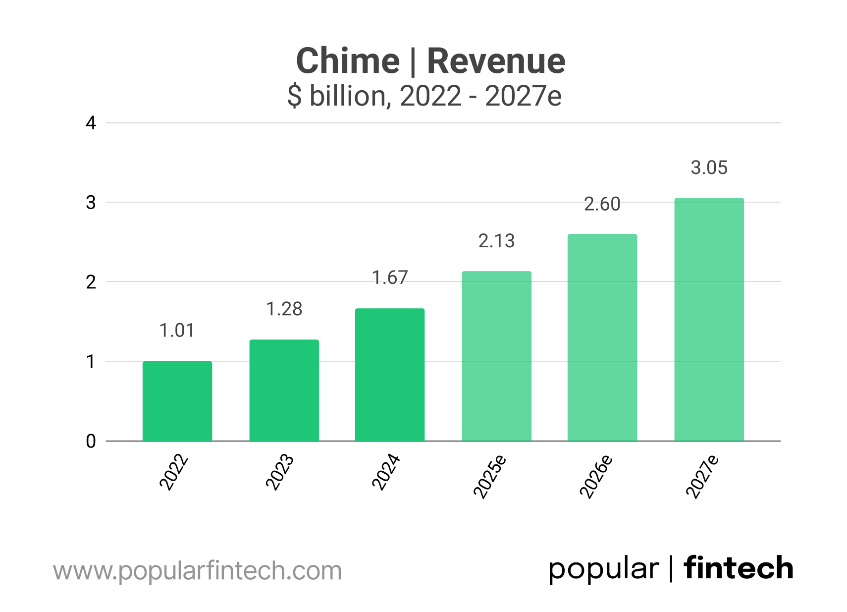 ✔️ Over time, Chime will diversify its revenue streams away from interchange, most likely by expanding into lending products like cash advances, BNPL, and credit cards.