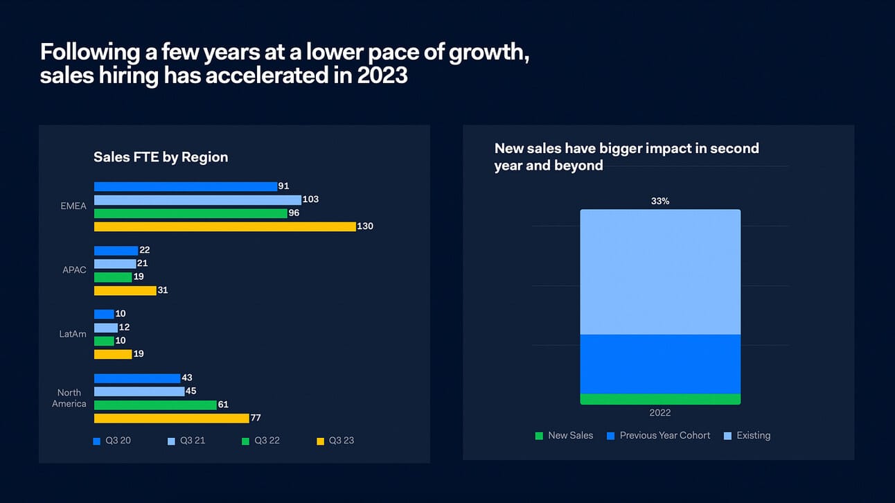 “[ H2 2023 ] concluded a two-year project dedicated to growing our global team. With H2 2023 marking the final stretch of this initiative, we intentionally slowed hiring as this accelerated investment period closed. The majority of our H2 hires sat in tech and commercial roles located in offices outside of Amsterdam.”