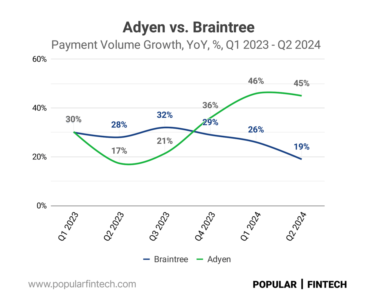 One of the narratives that floated around that time was that Adyen struggled to compete with PayPal-owned Braintree. At the time, Braintree was (allegedly) trying to win the market share at any cost, which was a problem for Adyen that is famous for not competing on price.
