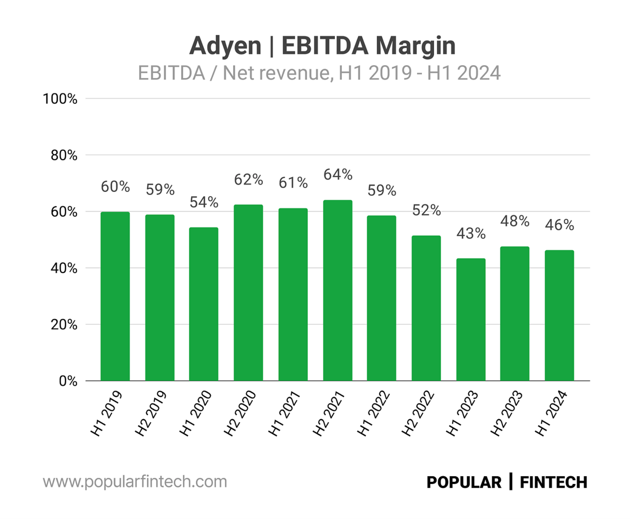 If you recall, hiring was not popular amongst Fintech companies in that period. Moreover, hiring started negatively impacting Adyen’s EBITDA margin (please note that Adyen calculates EBITDA margin as EBITDA divided by net revenue. Thus, EBITDA margin might look very high compared to their U.S. peers).