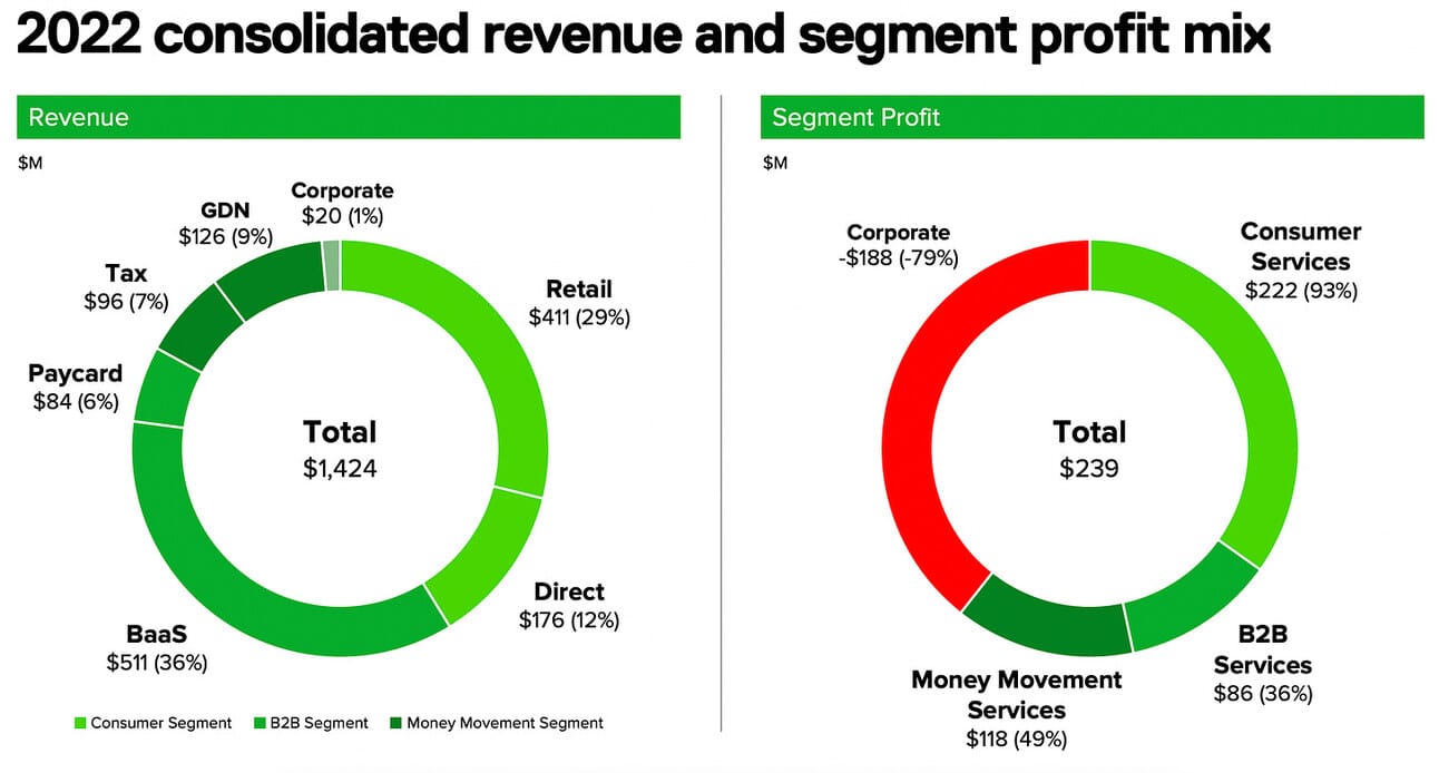 Shares of Green Dot (NYSE: GDOT) declined 6.86% yesterday after Needham & Company downgraded the stock to “Neutral” (from “Buy”), as well as removed the $20 price target. Investment bank analysts cited Banking-as-a-Service customer attrition and the macro headwinds for the company’s direct-to-consumer segment. Green Dot is a financial services provider that offers various products such as debit, credit, prepaid, and payroll cards, as well as money processing, tax refunds, cash deposits and disbursements. The company provides its services directly to consumers through its GO2bank brand, as well as indirectly to customers and employees of its BaaS clients. The company’s clients include Apple and Amazon.