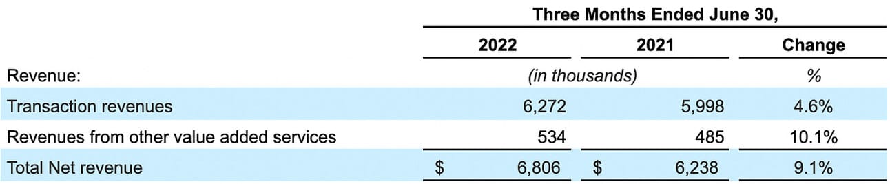 PayPal reported $6.8 billion in total net revenue, which represents a 9.1% growth compared to Q2 2022, and a 5% growth sequentially. Transaction revenue grew 4.6% YoY, and revenue from value-added services grew 10.1% YoY. As per the company’s 10Q filling, the Transaction revenue was “driven primarily by growth in our unbranded card processing volume, which consists of our Braintree products and services, and to a lesser extent, Venmo.”