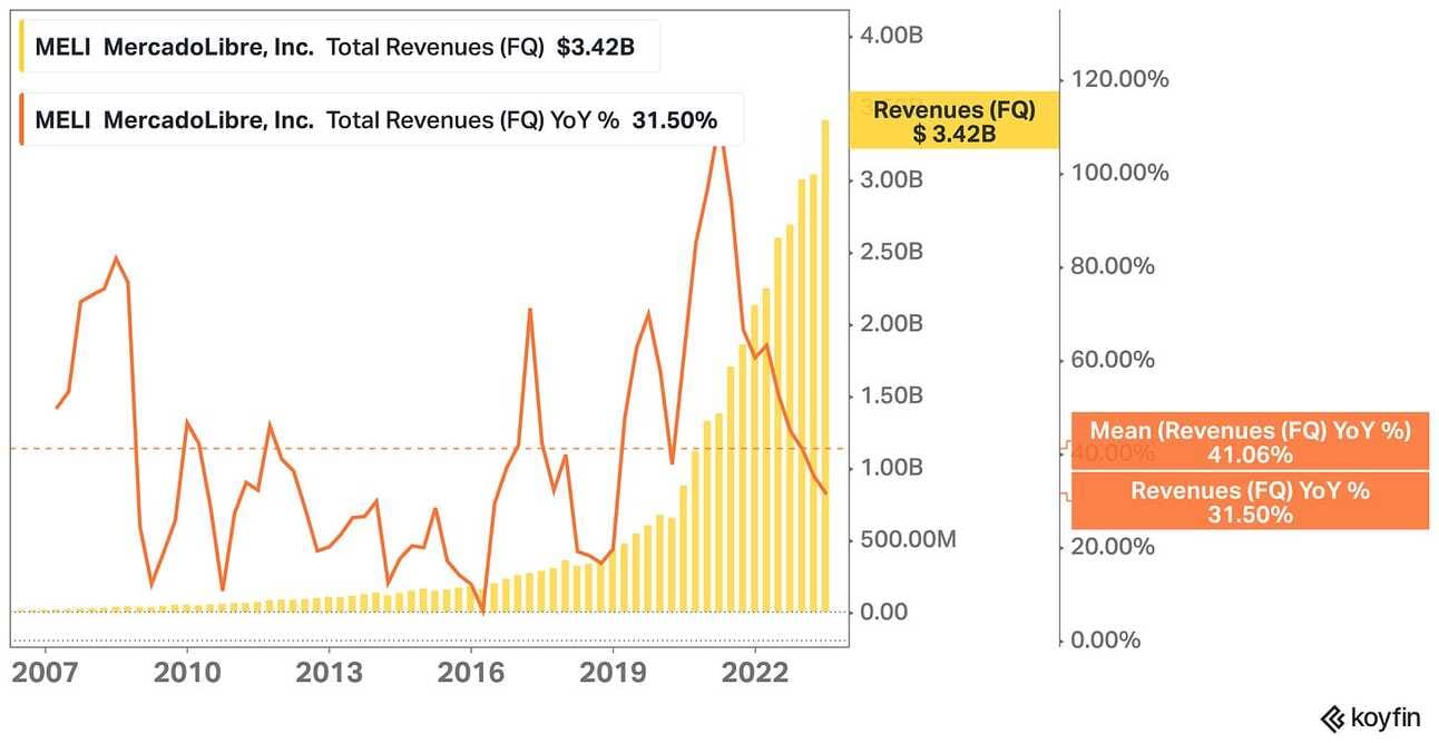 If you are listening to Mercado Libre’s earnings call, you would be familiar with Pedro Arnt. Last week, Mercado Libre reported its second-quarter results, posting a 31% YoY growth in total revenue to $3.42 billion. Commerce revenue increased by 37.9% YoY to $1.94 billion, while Fintech revenue rose 24.0% YoY to $1.48 billion. The revenue was driven by a 47% YoY growth in Gross Merchandise Volume and a 96% YoY growth in Total Payment Volume. Net income for the quarter more than doubled to $262 million, compared to $163 million in the second quarter of 2022.