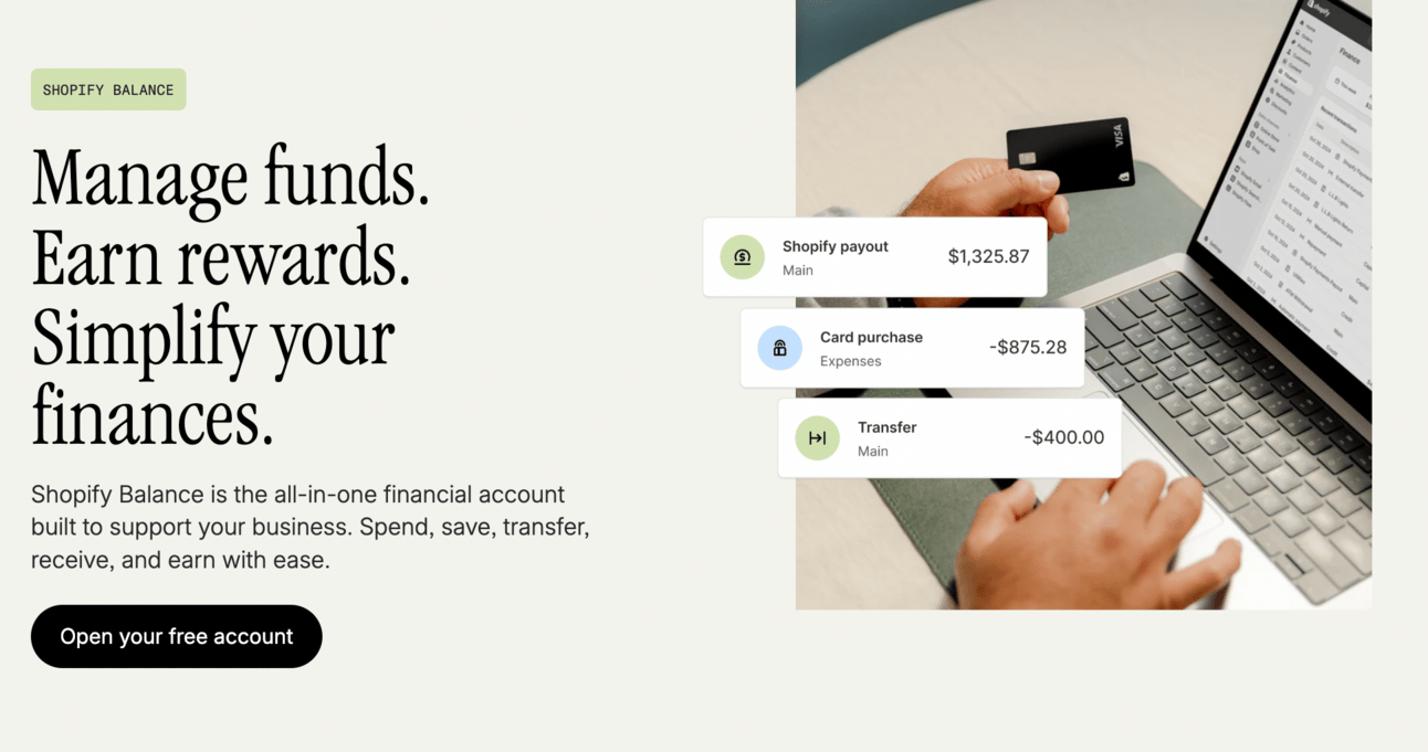 However, Shopify also offers Shopify Capital (merchant financing), consumer financing (Shop Pay Installments powered by Affirm), FX (powered by Global-E), and has a full banking offering for small businesses, including bill pay and savings accounts.