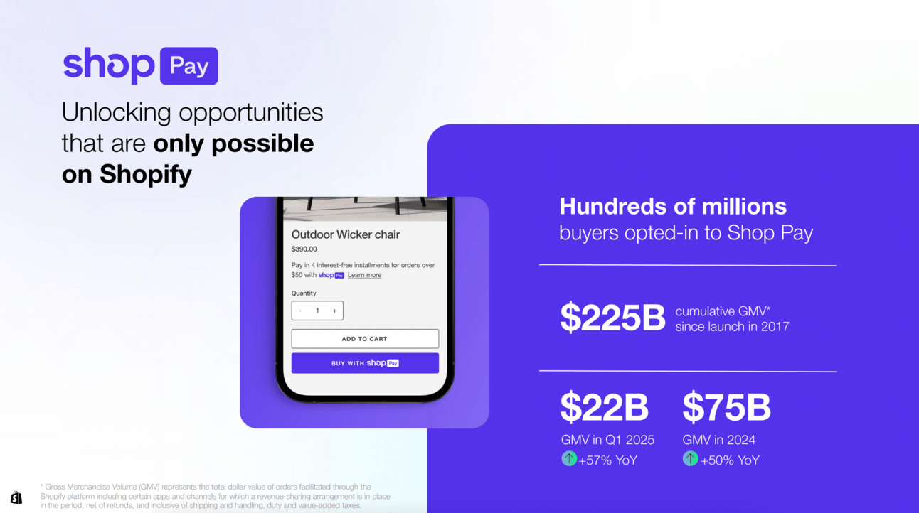 “One of the biggest advantages to our merchants is access to Shop Pay. And in Q1, Shop Pay GMV was up 57% from last year, processing over $22 billion in GMV. Within our core pillars of Shop, the Shop Pay component continues to be a key product offering that is working to drive upmarket enterprise-level growth opportunities.”