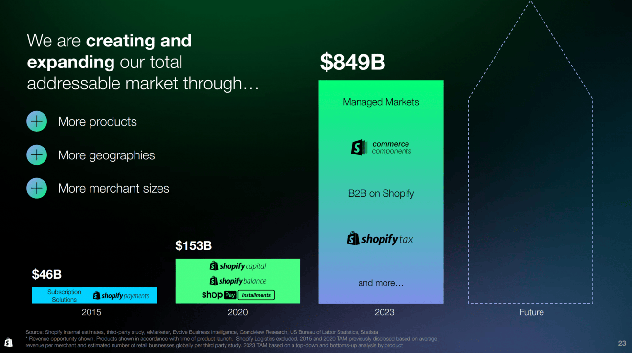 It should be noted that the largest component of Shopify’s TAM estimate is in-person commerce. As noted earlier, Shopify is still in the early stages of pursuing the offline retail opportunity, and success is not guaranteed, so the TAM estimate should be viewed with caution.