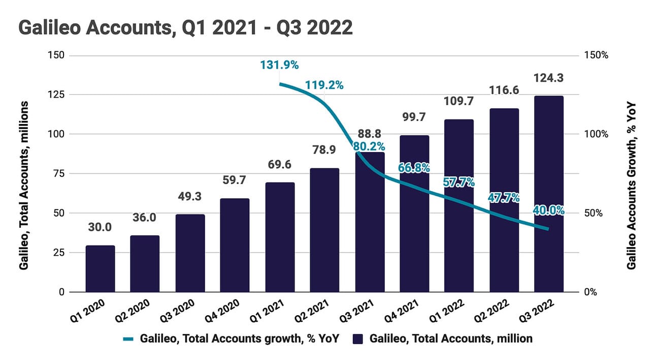“Technology products and solutions” income, the second largest component of Non-Interest Income, increased by $32.0 million compared to Q3 2021, which was driven by a $13.5 million increase in Galileo income, and an $18.5 million contribution from consolidating Technisys revenue. “Technology products and solutions” revenue was almost flat compared to the previous quarter ($81.7 million in Q2 2022 vs $82.0 million in Q3 2022), which is partially explained by a decline in contribution from Technisys ($20.3 million in Q2 2022 vs. $18.5 million in Q3 2022).