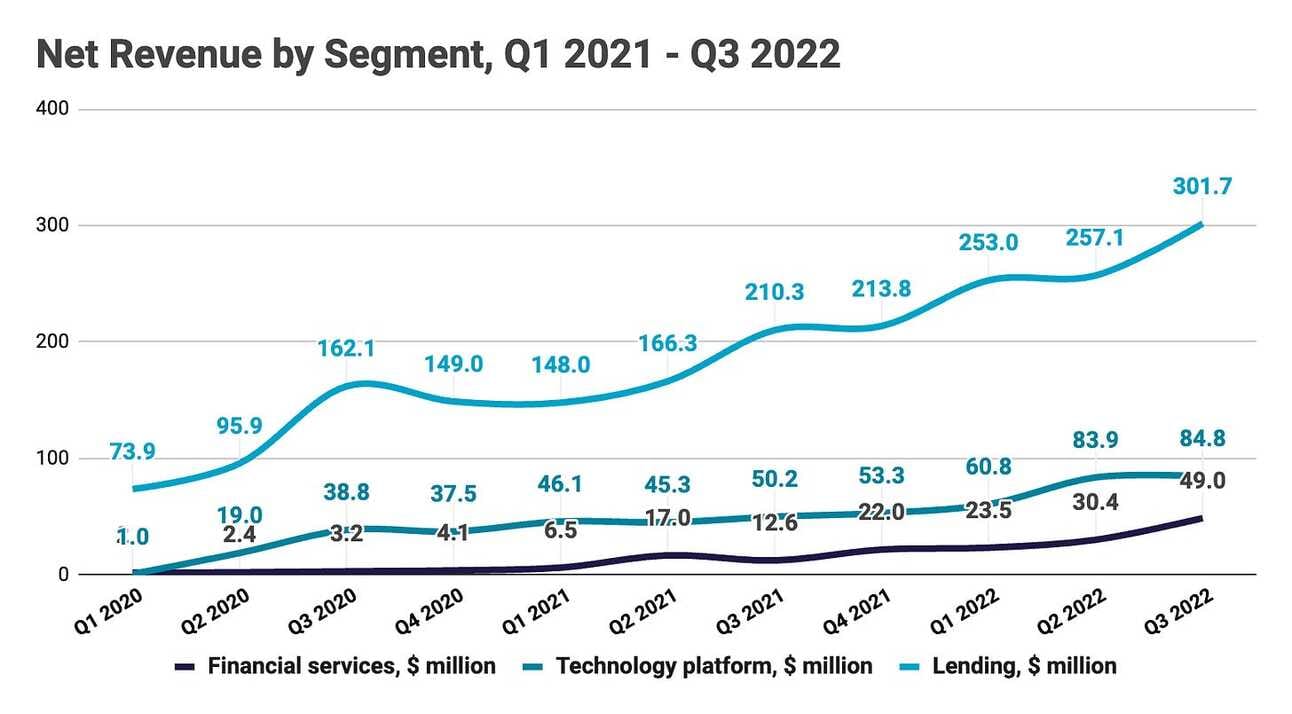 This year has been brutal for Fintech lenders. Rising interest rates and economic uncertainty constrained the availability of funding and increased investor return expectations. Upstart, which funds its originations solely through loan sales to investors and securitizations, was the first lender to stumble. LendingClub benefited from getting a banking charter, but still guided for a decline in revenue and profitability in Q4 2022, and even the almighty Goldman Sachs had to lower the ambitions for its consumer lending arm, Marcus by Goldman Sachs.