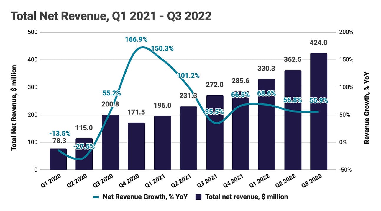 The company’s management guided for $1,517-1,522 in "Adjusted Net Revenue” (GAAP revenue adjusted for changes in the valuation of servicing rights and residuals of securitizations) for the full year, which translates to $420-$425 million Adjusted Net Revenue in Q4 2022 and would represent a 50-51% growth compared to Q4 2021 and 0.4 - 1.2% growth compared to Q3 2021.