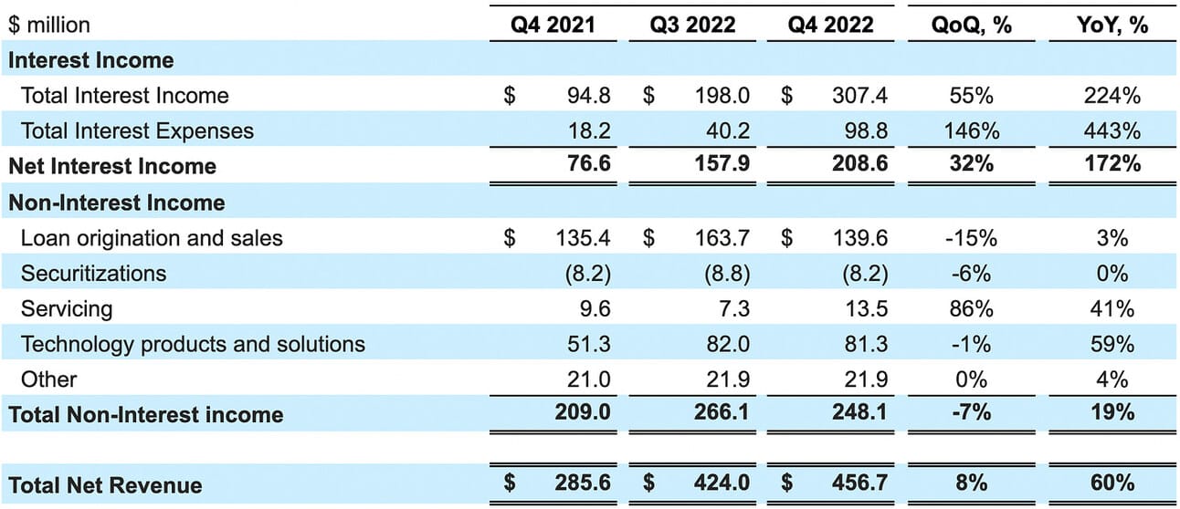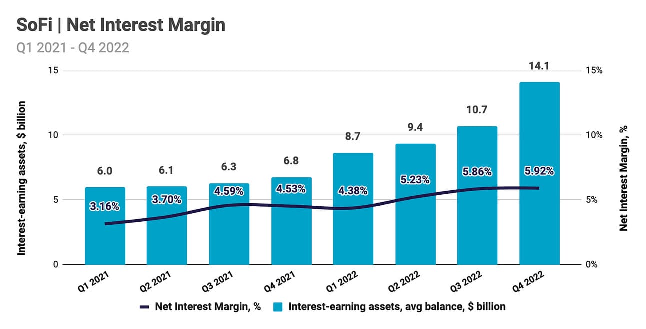 As noted earlier, non-interest income declined sequentially, so the growth in net revenue in Q4 2022 is fully attributable to the growth in net interest income, which, in turn, was primarily a result of the growth in interest-earning assets. Thus, the average balance of interest-earning assets (primarily, loan portfolio and cash held at other banks) increased from $10.7 billion in Q3 2022 to $14.1 billion in Q4 2022, while Net Interest Margin increased only modestly from 5.86% in Q3 2022 to 5.92% in Q4 2022. As the personal loan origination volumes decline in 2023, the interest-earning assets, and consequently, interest income will grow at a slower pace.