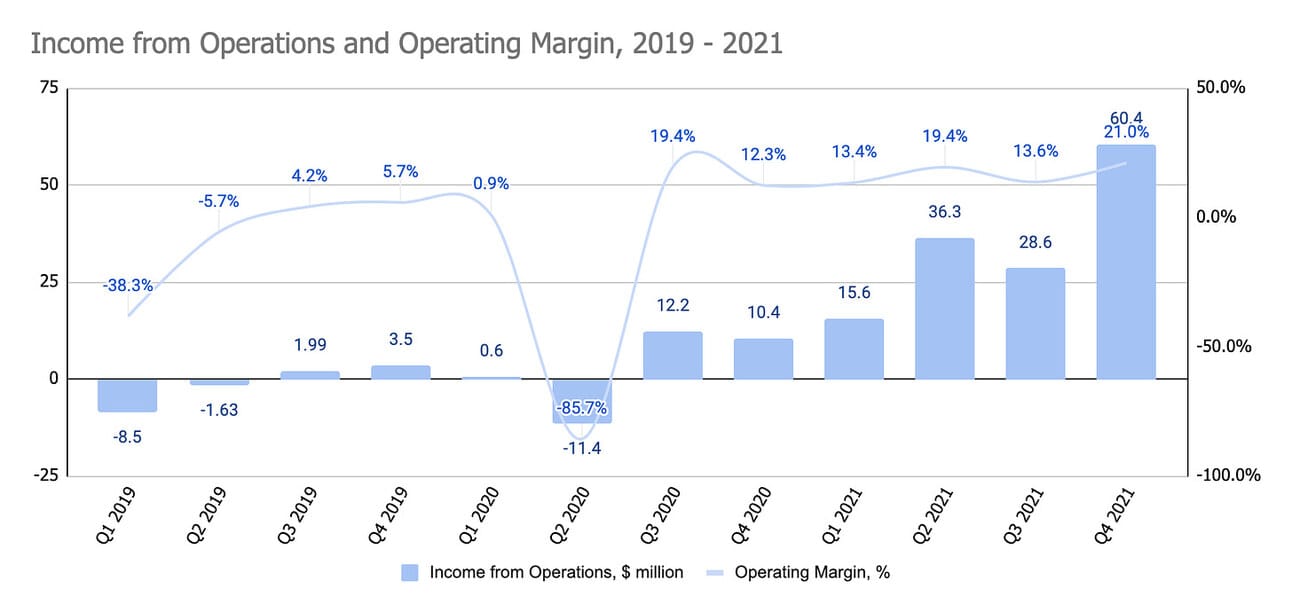 Upstart reported $60.4 million in Income from Operations for Q4 2021, $140.9 million for the full year 2021, which represented 481% YoY growth for the quarter, and 1,097% for the full year.