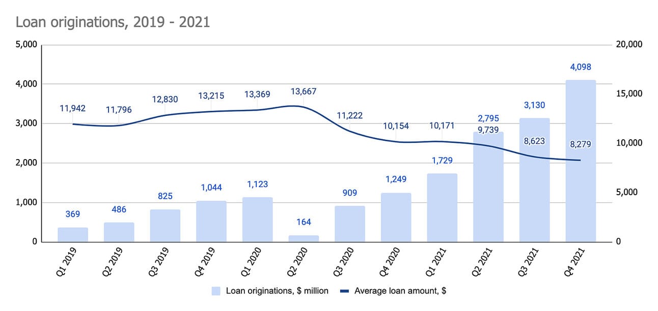 The company did not provide guidance on their total origination volumes in 2022, but gave a guidance of $1.5 billion in auto loans. During the earnings call, the company’s management sounded confident that their auto loans product has reached sufficient maturity for scaling. Development of auto loan lending is definitely the right direction for scaling the business, but this will still have a relatively small contribution in 2022 (i.e. $1.5 billion in originations is 13% of total originations that the company did in 2021, so I expect auto loans to constitute less than 10% of total originations in 2022).