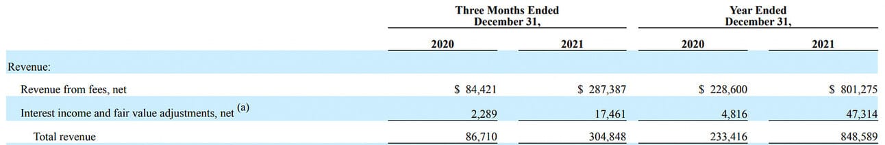 Upstart reported $304.8 million in revenue in Q4 2021, which represented 251% growth from Q4 2020, and 387% from Q4 2019. Revenue for full-year 2021 stood at $848.6 million, which represented 263% growth compared to 2020, and 416% growth compared to 2019.