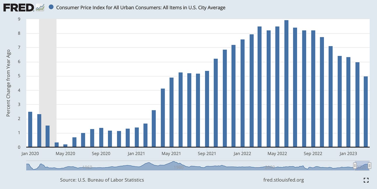 On Wednesday, before markets open, the US Labor Department will release the Consumer Price Index data for April 2023. On a year-over-year basis, CPI increased by 5% in March and 6% in February. The inflation peaked at 8.9% in June last year. While US inflation is on the decline, it is still far away from the Federal Reserve’s target of 2%. Thus, investors will be watching the inflation results closely, making their conclusions about further Fed’s actions. Last week, the Federal Reserve raised the federal funds rate by another 25 basis points to 5.00 - 5.25% despite the turbulence in the banking sector and the signs of a slowing economy.