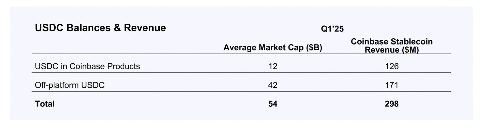 After that, Coinbase receives 100% of the reserve income from USDC held on its platform (under its custody), while Circle keeps 100% of the income from USDC held on its own platform. In Q1 2025, the average USDC balance on Coinbase’s platform was $12 billion, compared to $3.1 billion on Circle’s platform.