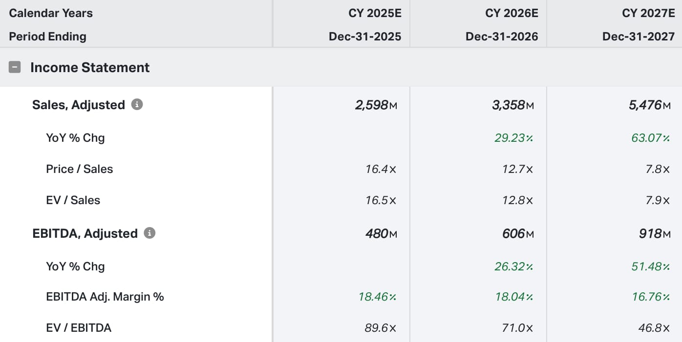 Current analyst estimates project $5.5 billion in revenue and $918 million in adjusted EBITDA by 2027. Hitting those targets would imply a stablecoin market cap of around $760 billion, a 27% market share for USDC, a 3.25% reserve yield, and minimal contribution from non-interest income.